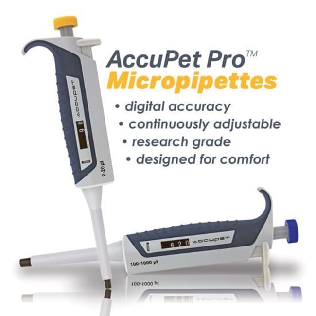The Chemglass Life Sciences AccuPet Pro single-channel micropipette (100-1000 μL) is a research-grade, adjustable air-displacement pipettor designed for routine laboratory liquid handling. It combines ergonomic design with a digital volume indicator and autoclavable components to support accurate, comfortable pipetting during extended use.