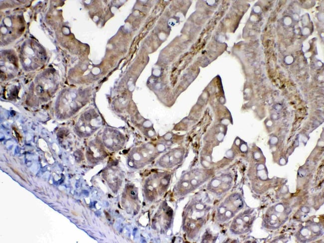 Reconstitute with 0.2 mL of distilled water to yield a concentration of 500 μg/mL. Positive Control - WB: rat stomach tissue, rat kidney tissue, mouse small intestine tissue. IHC: rat small intestine tissue, mouse spleen tissue, mouse spleen tissue, rat brain tissue, rat spleen tissue.