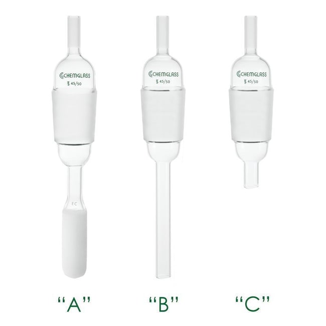 Chemglass Life Sciences Style "B" Gas Inlet Adapter, 45/50, (SUPPLIED WITH COMPLETE SCRUBBER)