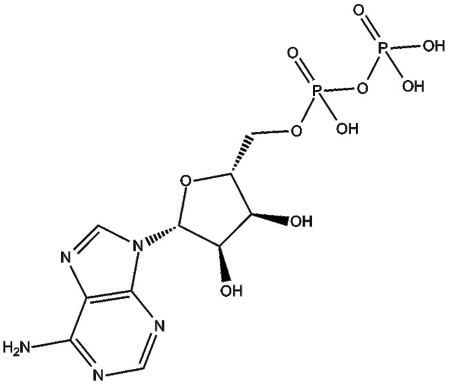Adenosine-5 -diphosphate (CAS 58-64-0) commonly known as ADP is an endogenous nucleotide serving as an agonist of purinergic receptors It activates various P2 receptor subtypes exhibiting an IC50 of 67 nM at P2X2/3 receptors ADP results from ATP hydrolysis mediated by ATPases and can be reconverted to ATP via ATP synthases or further processed to AMP and other metabolites Through receptor modulation ADP influences cellular functions including neural stem cell proliferation vascular response apoptosis cytokine secretion and kinase-driven phosphorylation pathways thus playing a critical role in purinergic signaling research