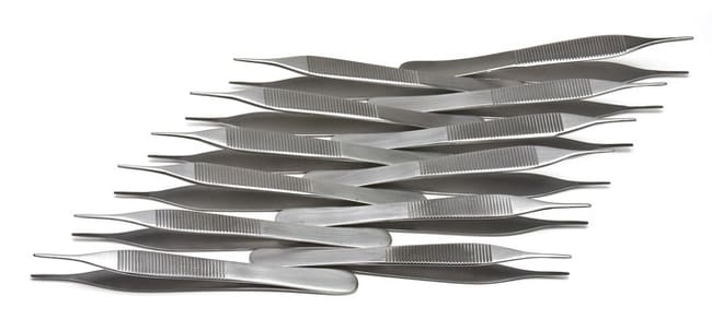 Adson forceps have a toothed tip for working with dense tissue, such as skin closures.