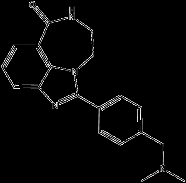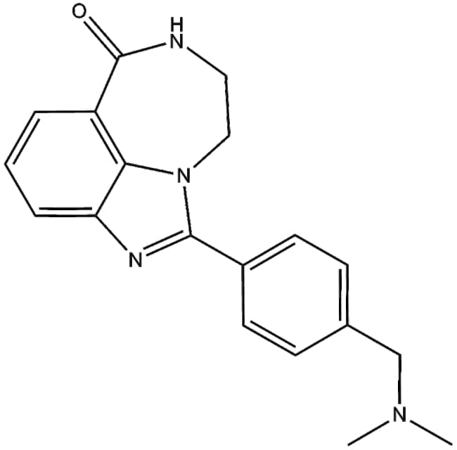 AG-14361 (CAS 328543-09-5) is a highly selective inhibitor of poly(ADP-ribose) polymerase-1 (PARP-1) exhibiting a Ki50 of less than 5 nM PARP-1 is integral to DNA repair and cell death pathways and is overexpressed in various tumor types AG-14361 has demonstrated the ability to sensitize homologous recombination (HR) and BRCA2-deficient cells to DNA-damaging agents at non-cytotoxic concentrations In human K562 cells AG-14361 enhances camptothecin-induced growth inhibition and cytotoxicity while increasing DNA single-strand breaks It also restores temozolomide sensitivity in mismatch repair-proficient cells Preclinical models indicate greater antitumor responses in BRCA2-deficient xenografts following AG-14361 administration supporting its use in DNA repair and cancer research