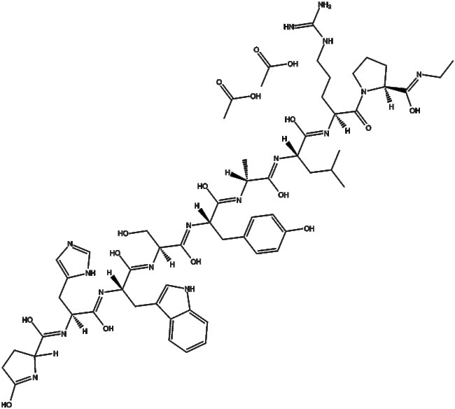 Alarelin Acetate (CAS 79561-22-1) is a synthetic gonadotropin-releasing hormone (GnRH) agonist peptide This compound acts at the hypothalamic-pituitary axis by stimulating GnRH receptors leading to increased release of follicle-stimulating hormone (FSH) and luteinizing hormone (LH) from the anterior pituitary gland Alarelin demonstrates enhanced potency relative to natural LH-RH in stimulating gonadotropin secretion both in vivo and in vitro facilitating the induction of ovulation in animal models Given these endocrine-stimulating properties researchers commonly use Alarelin Acetate in studies focused on reproductive physiology fertility treatments and therapeutic interventions targeting endometriosis