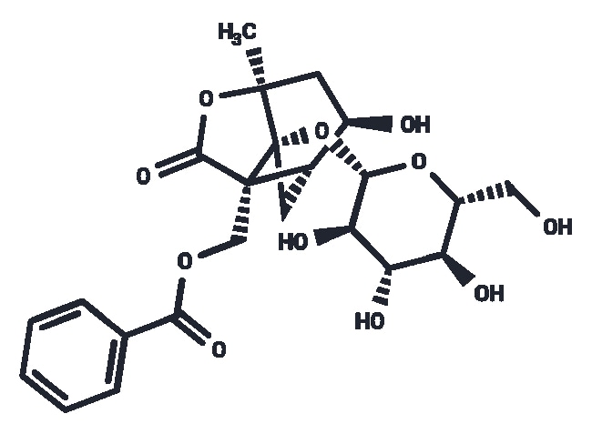 Also available in 100 mg 1 mL 10 mM (in DMSO) and bulk. Please contact Fisher for quotes. 1. Albiflorin (Alibiflorin) has anticonvulsant effect for pain relief. 2. Albiflorin and paeoniflorin has neuroprotective action against Glu toxicity. 3. Albiflorin and paeoniflorin significantly ameliorated Glu-induced reduction of cell viability nuclear and mitochondrial apoptotic alteration reactive oxygen species accumulation and B-cell lymphoma 2 (Bcl-2)/Bax ratio. 4. Albiflorin can serve as a new chemical marker for the quality control of Paeoniae Radix and the Chinese Pharmacopoeia can be updated via has similar anti-inflammatory effects to paeoniflorin. purity: 99%