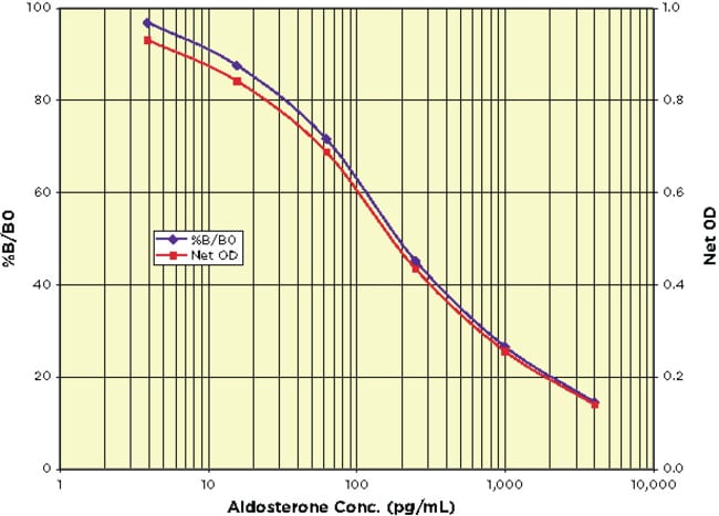 The DetectX Aldosterone ELISA Kits measure Aldosterone present in extracted serum and plasma, or in urine, saliva, extracted dried fecal samples, and tissue culture media samples.