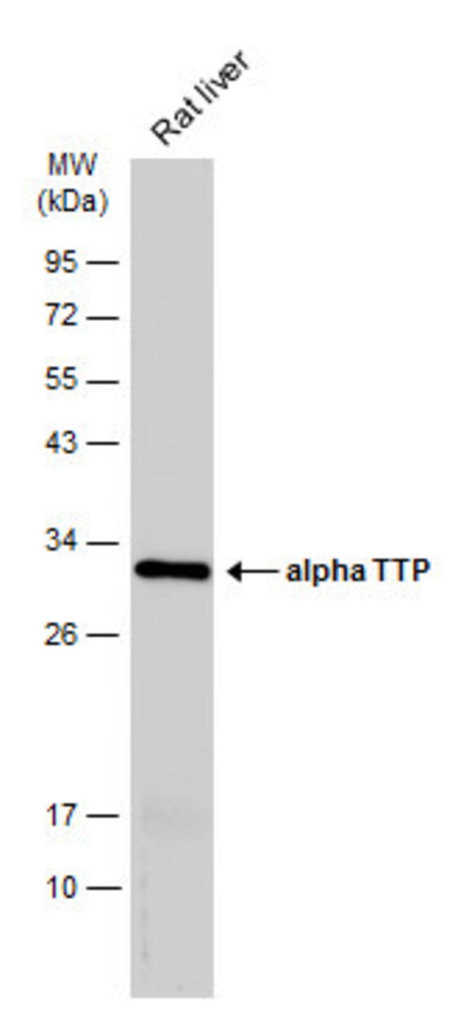 | Carrier-protein conjugated synthetic peptide encompassing a sequence within the C-terminus region of human alpha TTP. The exact sequence is proprietary. | |