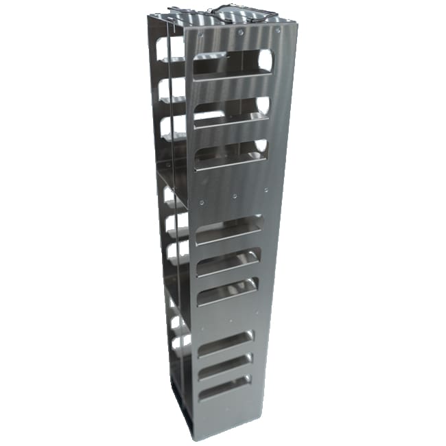 The Aluminum Vertical Rack for Standard 2in Boxes is an indispensable storage accessory engineered for optimal use within laboratory chest freezers and liquid nitrogen freezers Constructed from premium-grade aluminum this rack is robust enough to endure the extreme conditions of low-temperature storage environments while providing efficient organization of standard 2in storage boxes Product Features Premium Aluminum Construction Crafted from high-grade aluminum this vertical rack boasts superior durability and resistance to the cold temperatures and moisture found in chest and liquid nitrogen freezers Its corrosion-resistant finish ensures longevity and reliability making it an ideal choice for rigorous laboratory use Designed for Standard 2in Boxes This rack is precisely dimensioned to hold standard 2in boxes ensuring a secure and stable fit The snug accommodation of boxes prevents accidental slips or falls thereby protecting valuable samples from potential damage Maximize Stora