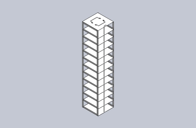 The Aluminum Vertical Rack for Standard 2in Boxes is an indispensable storage accessory engineered for optimal use within laboratory chest freezers and liquid nitrogen freezers Constructed from premium-grade aluminum this rack is robust enough to endure the extreme conditions of low-temperature storage environments while providing efficient organization of standard 2in storage boxes Product Features Premium Aluminum Construction Crafted from high-grade aluminum this vertical rack boasts superior durability and resistance to the cold temperatures and moisture found in chest and liquid nitrogen freezers Its corrosion-resistant finish ensures longevity and reliability making it an ideal choice for rigorous laboratory use Designed for Standard 2in Boxes This rack is precisely dimensioned to hold standard 2in boxes ensuring a secure and stable fit The snug accommodation of boxes prevents accidental slips or falls thereby protecting valuable samples from potential damage Maximize Stora