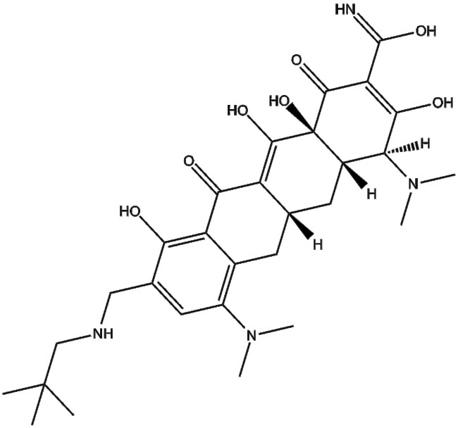 Amadacycline (CAS 389139-89-3) is a tetracycline-class antibiotic targeting the bacterial ribosomal 30S subunit It is designed to inhibit bacterial protein synthesis thereby preventing microbial proliferation Amadacycline exerts its biological activity primarily through interference with bacterial translation by inhibiting the 30S ribosomal subunit The exact IC50 value for Amadacycline has not been established Based on these pharmacological properties Amadacycline holds research potential in investigating antibiotic resistance mechanisms bacterial ribosome-targeting strategies and as a candidate in studies evaluating therapeutic agents for complicated skin and skin structure infections