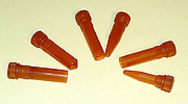 Amber color tubes block light transmission that can adversely affect fluorescent and other light sensitive samples. Polypropylene tubes withstand high speed centrifugation (up to 20,000xg), autoclaving, boiling and freezer storage. Tubes tolerate temperatures from -80°C to +95°C; can withstand a quick dip flash freeze in LN2. Screw cap with ''O'' ring provides superior sealing during sample processing. Tubes and caps are supplied in separate bags.
