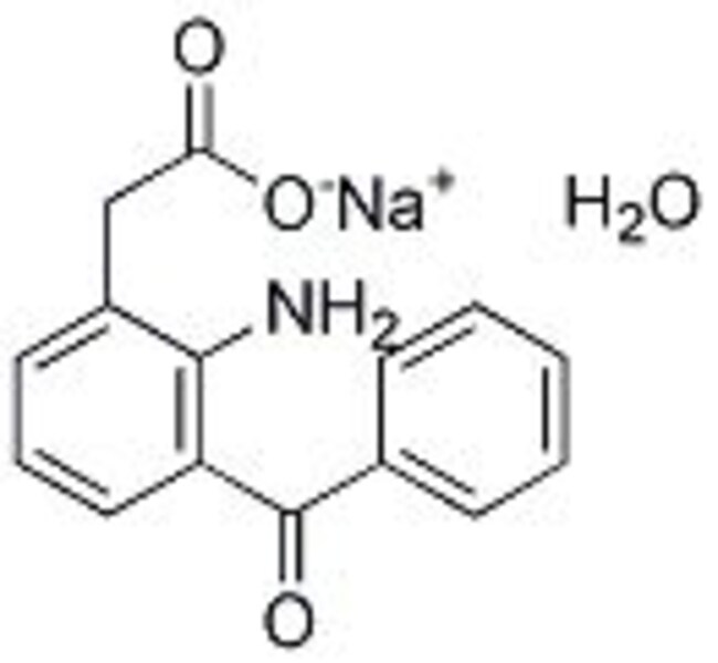 Amfenac Sodium monohydrate is a non-steroidal analgesic anti-inflammatory drug with acetic acid moiety. The IC50 values for COX1 and COX2 is 250 nM and 150 nM, respectively. *For Research & Development use only. Product is not intended for drug, household, or human consumption.