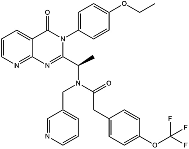 AMG 487 (CAS 473719-41-4) is a selective small molecule antagonist targeting chemokine receptor CXCR3 a G protein-coupled receptor involved in immune cell migration It competitively inhibits CXCR3 binding to its cognate chemokines including IP-10 and ITAC with IC50 values reported at approximately 8 nM and 8 2 nM respectively Cell-based assays indicate AMG 487 can effectively impede IP-10 ITAC and MIG-mediated chemotaxis and ITAC-induced calcium mobilization AMG 487 is metabolized via CYP3A4 and CYP3A5 to metabolites one of which (M2) inhibits CYP3A Given these characteristics AMG 487 provides a valuable pharmacological tool for investigating CXCR3 functions in inflammatory and immunological research