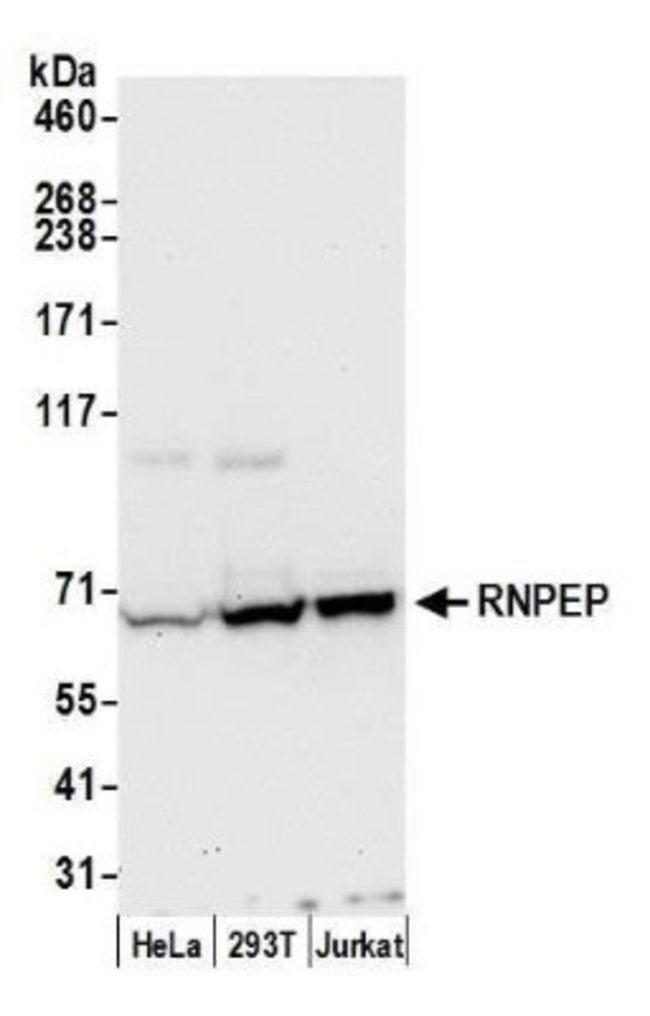 Aminopeptidase B/RNPEP Polyclonal specifically detects Aminopeptidase B/RNPEP in Human samples. It is validated for Western Blot, Immunoprecipitation.Specifications