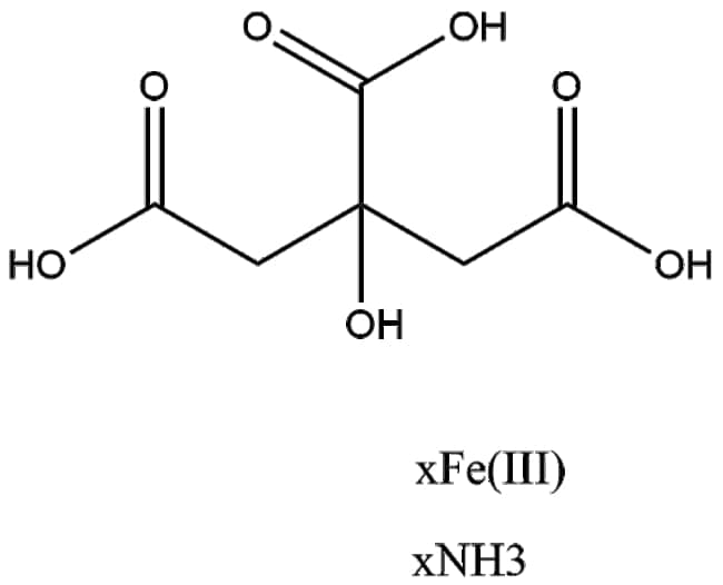 Ammonium iron(III) citrate (CAS 1185-57-5) is a coordination complex that serves as a bioavailable source of ferric ions It participates in cellular iron delivery supporting various enzymatic processes and redox reactions In experimental contexts it is often employed to modulate iron concentrations in biological systems and to induce oxidative stress Notably co-administration with metal chelators such as dimercaprol can increase the risk of renal toxicity reflecting potential interactions in metal homeostasis studies Ammonium iron(III) citrate is widely used in studies investigating iron metabolism oxidative damage and chelation therapies