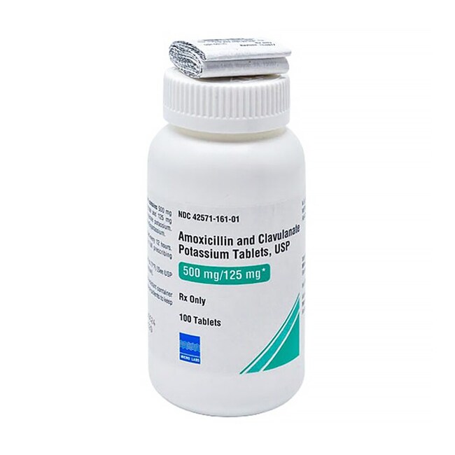 Med Vet International Amoxicillin Clavulanate (Augmentin) 500-125mg Tablet White Oblong 100 Tablets