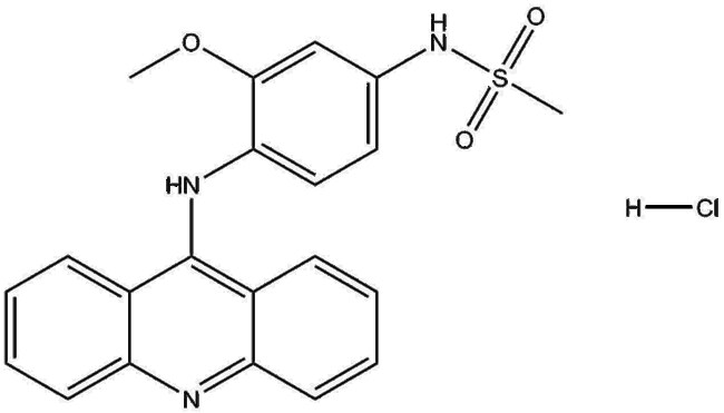Amsacrine hydrochloride (CAS 54301-15-4) also known as m-AMSA is a small molecule inhibitor of DNA topoisomerase II By interfering with the religation step of the topoisomerase II catalytic cycle it induces DNA strand breaks and disrupts DNA replication and transcription In vitro studies have shown that Amsacrine hydrochloride exhibits cytotoxicity against various cancer cell lines including bladder (HT1376 RT112 RT4) and testicular (833K Susa GH) cancer cells with IC50 values ranging from 5 0 to 190 2 ng/ml Testicular cancer cell lines display greater sensitivity to this agent compared to bladder cancer cell lines Amsacrine hydrochloride is utilized in research exploring DNA damage mechanisms and antineoplastic drug responses