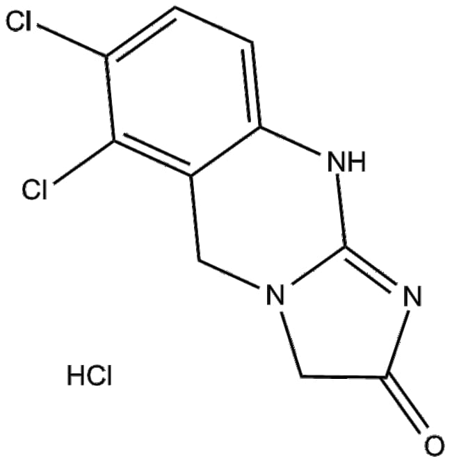 Anagrelide hydrochloride (CAS 58579-51-4) is a selective thrombocytopenic agent approved for the treatment of essential thrombocythemia Its primary mechanism involves inhibiting the maturation of megakaryocytes thereby reducing platelet production without significantly affecting leukocytes or erythrocytes Orally administered anagrelide demonstrates platelet-lowering effects at doses as low as 0 5 mg In preclinical studies anagrelide exhibits positive inotropic and vasodilatory properties with additional implications for use in other myeloproliferative disorders such as polycythemia vera and chronic myeloid leukemia Its application extends to research on thrombopoiesis and related hematological pathologies