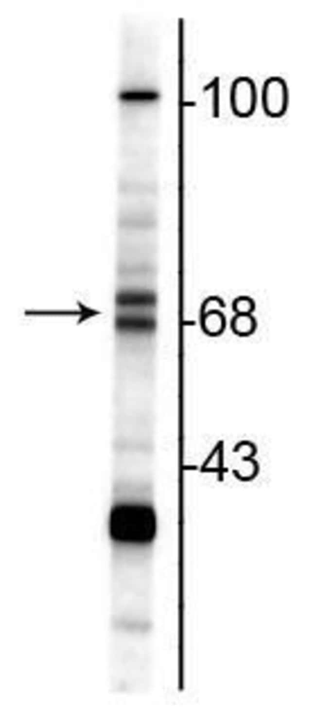 In Western blot, bands at approximately 68/70 kDa are detected.