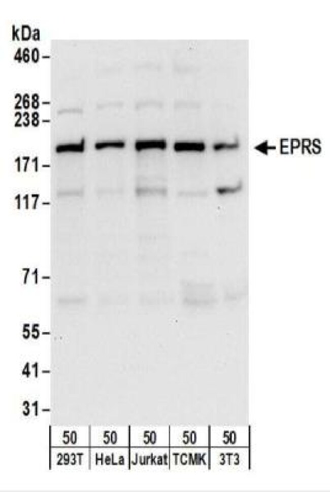 EPRS Polyclonal specifically detects EPRS in Human, Mouse samples. It is validated for Western Blot, Immunohistochemistry, Immunoprecipitation, Immunohistochemistry-Paraffin.Specifications