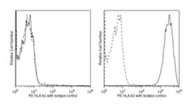 The monoclonal antibody BB7.2 reacts with a subunit of the human leukocyte antigen-A2 (HLA-A2), a class I molecule of the major histocompatibility complex (MHC). The MHC gene locus encodes a group of highly polymorphic, cell-surface proteins that play a broad role in the immune response to protein antigens. MHC molecules function by binding and presenting small antigenic protein fragments to antigen-specific receptors expressed by T cells (TCR). Human (human leukocyte antigen/HLA) MHC molecules comprise two major classes, MHC class I and class II. Functionally, class I MHC molecules can bind peptides derived from intracellular antigens (eg, viral and some bacterial antigens) that are specifically recognized by CD8+ T cells, and class II MHC molecules recognize antigens derived from pathogens multiplying in intracellular vesicles, and those derived from ingested extracellular bacteria. When presented on the cell surface by the MHC class II molecules, these antigens are recognized by CD4+ T cells. TCR recognize both processed peptides bound to MHC, as well as regions of the MHC molecule itself. CD4 and CD8 accessory molecules strengthen formation of the TCR-MHC complex through their interaction with non-polymorphic regions of the MHC molecule.