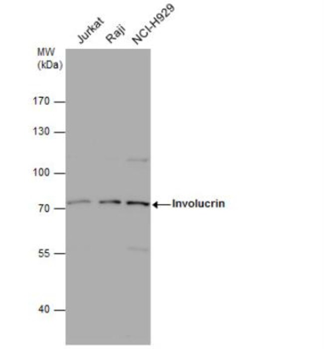 Involucrin Polyclonal specifically detects Involucrin in Human samples. It is validated for Western Blot, Immunohistochemistry, Immunocytochemistry/Immunofluorescence, Immunohistochemistry-Paraffin.Specifications