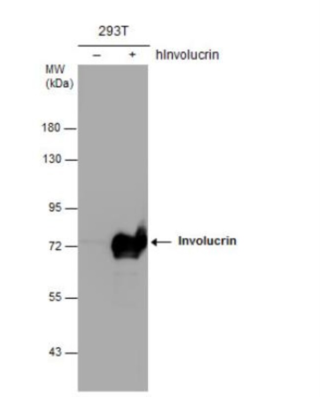 Carrier-protein conjugated synthetic peptide encompassing a sequence within the N-terminus region of human Involucrin. The exact sequence is proprietary. | |