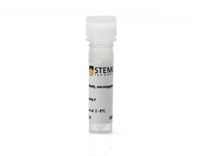 The MC-631 antibody reacts with a galactosylgloboside epitope on the stage-specific embryonic antigen-3 (SSEA-3), which is expressed on the surface of human embryonal carcinoma (EC), embryonic germ (EG), undifferentiated embryonic stem (ES), and induced pluripotent stem (iPS) cells, as well as rhesus monkey ES cell lines. No immunoreactivity is evident with undifferentiated mouse EC, EG and ES cells. Expression of SSEA-3 is down regulated following differentiation of ES and EC cells. In contrast, the differentiation of mouse ES and EC cells may be accompanied by an increase in SSEA-3 expression.This antibody clone has been verified for labeling human ES and iPS cells grown in TeSR™-E8™ (Catalog #05940), mTeSR™1 (Catalog #85850) and TeSR™2 (Catalog #05860) and has been verified for purity assessments of cells isolated with EasySep™ kits, including EasySep™ Human ES/iPS Cell TRA-1-60 Positive Selection Kit (Catalog #18166).