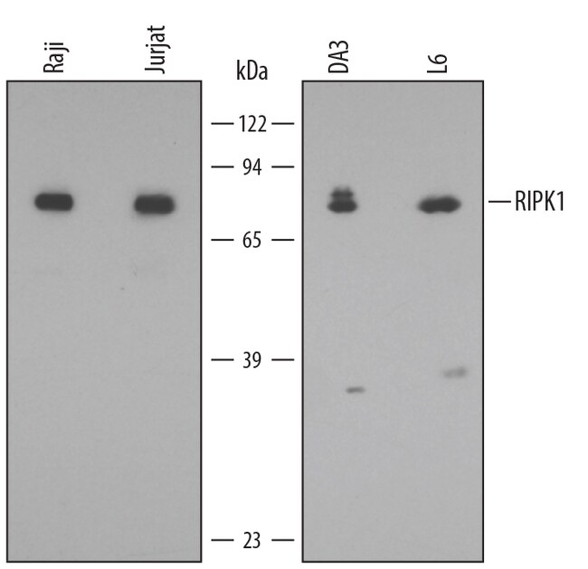 Detects human, mouse and rat RIPK1/RIP1 in Western blots. | |