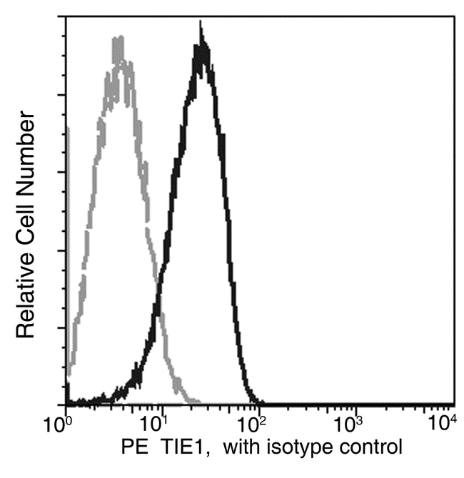 This antibody was produced from a hybridoma resulting from the fusion of a mouse myeloma with B cells obtained from a mouse immunized with purified, recombinant Human Tie1 (rh Tie1; Catalog#10509-H08H; NP_005415.1; Met 1-Gln 760) and conjugated with PE under optimum conditions, the unreacted PE was removed.