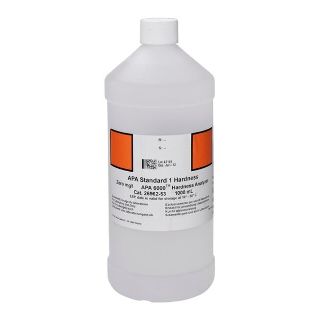 APA6000 Low Range Hardness Standard 1-50 g/L-1 LThe APA6000 Alkalinity Process analyzer uses five reagents each of which is supplied in a 1L bottle designed to provide reagents for 30 days of continuous use