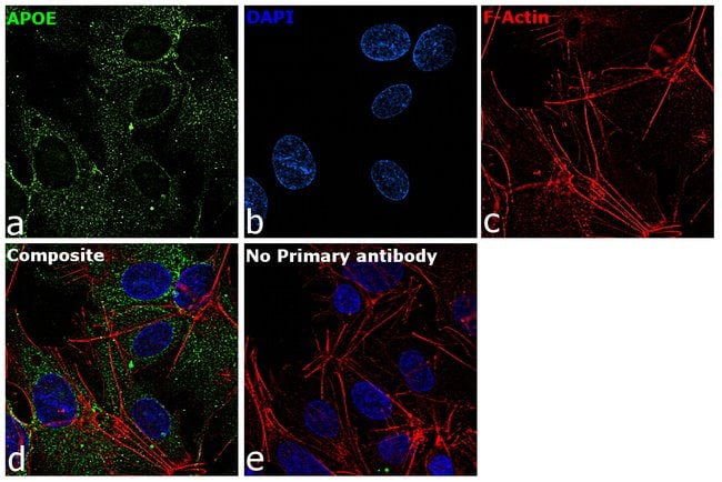Apo E (Apolipoprotein E) plays an important role in the metabolism of lipids in the plasma, and is also is a constituent of various plasma lipoprotein-lipid particles. The protein is synthesized in liver, brain, spleen, and the kidney, and concentrations are high in interstitial fluids, where it plays a role in distributing cholesterol from cells where cholesterol is in excess to cells which require cholesterol. Apo E also plays an important role in the formation of very low density lipoprotein and chylomicrons. The Apo E gene is located on chromosome 19 at position 19q13. 2.