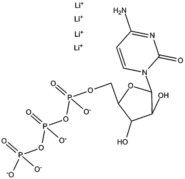 Ara-CTP is a sugar-modified nucleoside analogue composed of cytosine attached to arabinose phosphorylated as a triphosphate Ara-CTP exerts its biological activity primarily by incorporating into nucleic acid strands during nucleic acid synthesis thereby interfering with DNA polymerase and RNA polymerase activities Upon integration Ara-CTP disrupts nucleic acid elongation and replication steps resulting in strand termination or abnormal formation Based on these pharmacological properties Ara-CTP holds research potential in antiviral studies investigating viral replication mechanisms evaluating polymerase specificity identifying viral enzyme inhibitors and serving as a probe in biochemical assays exploring nucleotide-binding interactions and nucleic acid synthesis fidelity
