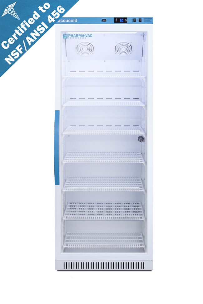 ARG12PV456 12CF GLASS DOOR IS CERTIFIED PURPSOE BUILT for SAFE VACCINE STORAGE. Accucold is proud to lead the industry with the largest line of cold storage product sizes certified to NSF/ANSI 456 Vaccine Storage Standard. The Pharma-Vac Performance Series supports meeting regulations and guidelines from the CDC, State Agencies, World Health Organization, and other Health Ministries on vaccine storage and handling. Temp. Security and Saftey Features: https://www.accucold.com/product/ARG12PV456