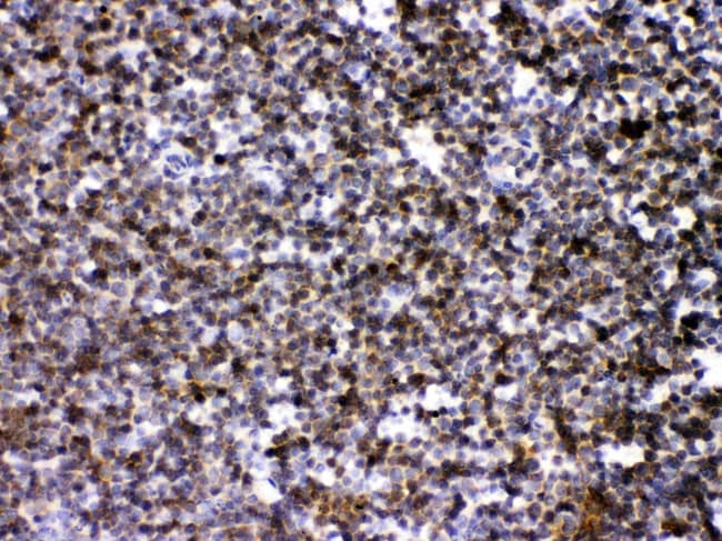Reconstitute with 0.2 mL of distilled water to yield a concentration of 500 μg/mL. Positive Control - WB: rat brain tissue, HELA whole cell, JURKAT whole cell. IHC: mouse lymphaden tissue, rat lymphaden tissue. ICC/IF: A431 cell. Flow: A431 cell.