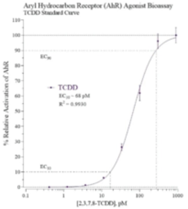 This assay kit provides the convenience of an all-inclusive cell-based reporter assay system for AhR activity. In addition to Reporter Cells, included are two optimized media for use during cell culture and in diluting the user's test samples, Luciferase Detection Reagent, and a cell culture-ready assay plate