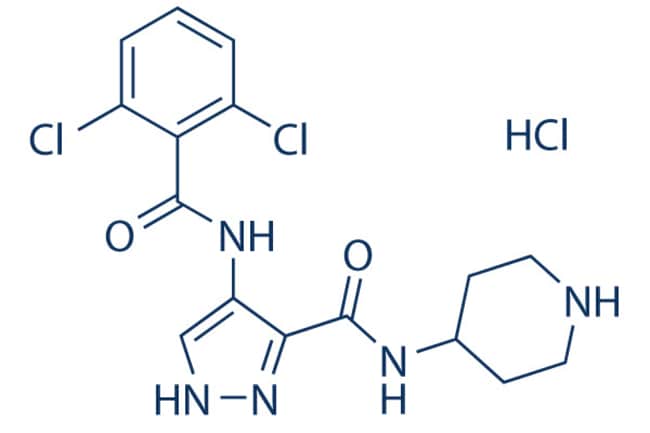 AT7519 HCl is a multi-CDK inhibitor for CDK1, 2, 4, 6 and 9 with IC50 of 10-210 nM in cell-free assays. It is less potent to CDK3 and little active to CDK7. Phase 2. *For Research & Development use only. Product is not intended for drug, household, or human consumption.