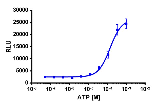 Adenosine 5′-triphosphate (ATP) is a multifunctional nucleotide and a key component of energy storage and metabolism used in many cellular processes. Serves as a substrate for kinases and coenzymes for a wide array of enzymatic reactions in-vivo. Potent p2 purinoceptor agonist. Provided as 10 mg of dry powder. These highly purified, pre-validated control ligands have been used to qualify our InCELL Hunter, PathHunter and cAMP Hunter cell lines as well as our Assay Ready Kits. Ligands are conveniently supplied with a recommended reconstitution buffer. For detailed information and product-specific datasheet, visit www.discoverx.com/ligands.