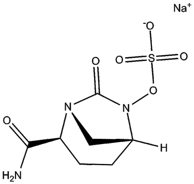 Avibactam sodium (1192491-61-4) is a small-molecule inhibitor targeting bacterial -lactamase enzymes including CTX-M-15 and TEM-1 It is designed to inhibit -lactamase activity thereby preventing the hydrolysis of -lactam antibiotics Avibactam sodium exerts its biological activity primarily through reversible covalent non- -lactam inhibition of its targets In in vitro studies avibactam sodium demonstrates inhibitory activity with IC50 values of 5 nM for CTX-M-15 and 8 nM for TEM-1 Based on these pharmacological properties avibactam sodium holds research potential in studies of combination therapy for bacterial infections involving -lactamase-producing Gram-negative pathogens