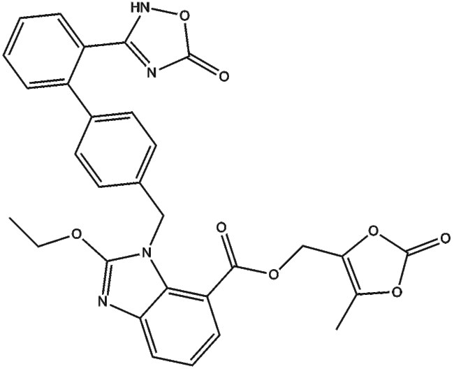 Azilsartan Medoxomil (CAS 863031-21-4) is an orally active prodrug that is converted in vivo to azilsartan a selective antagonist of the angiotensin II type 1 (AT1) receptor By inhibiting AT1 receptor signaling it interrupts the renin-angiotensin-aldosterone system thereby modulating vascular resistance and blood pressure In biochemical assays azilsartan medoxomil demonstrates potent antagonistic activity with an IC50 of 0 62 nM This compound is widely utilized in research focused on cardiovascular disease mechanisms and the pharmacological modulation of hypertension