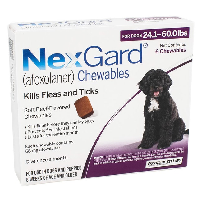 NexGard (afoxolaner) is FDA approved for veterinarian use, and demonstrated 100% effectiveness against adult fleas 24 hours post-infestation for 35 days. NexGard not only kills both fleas and ticks, it's also in the form of a soft, beef-flavored chew which in a recent study, 89% of dogs readily consumed. CAN ONLY GUARANTEE 6 MONTHS OF EXPIRATION