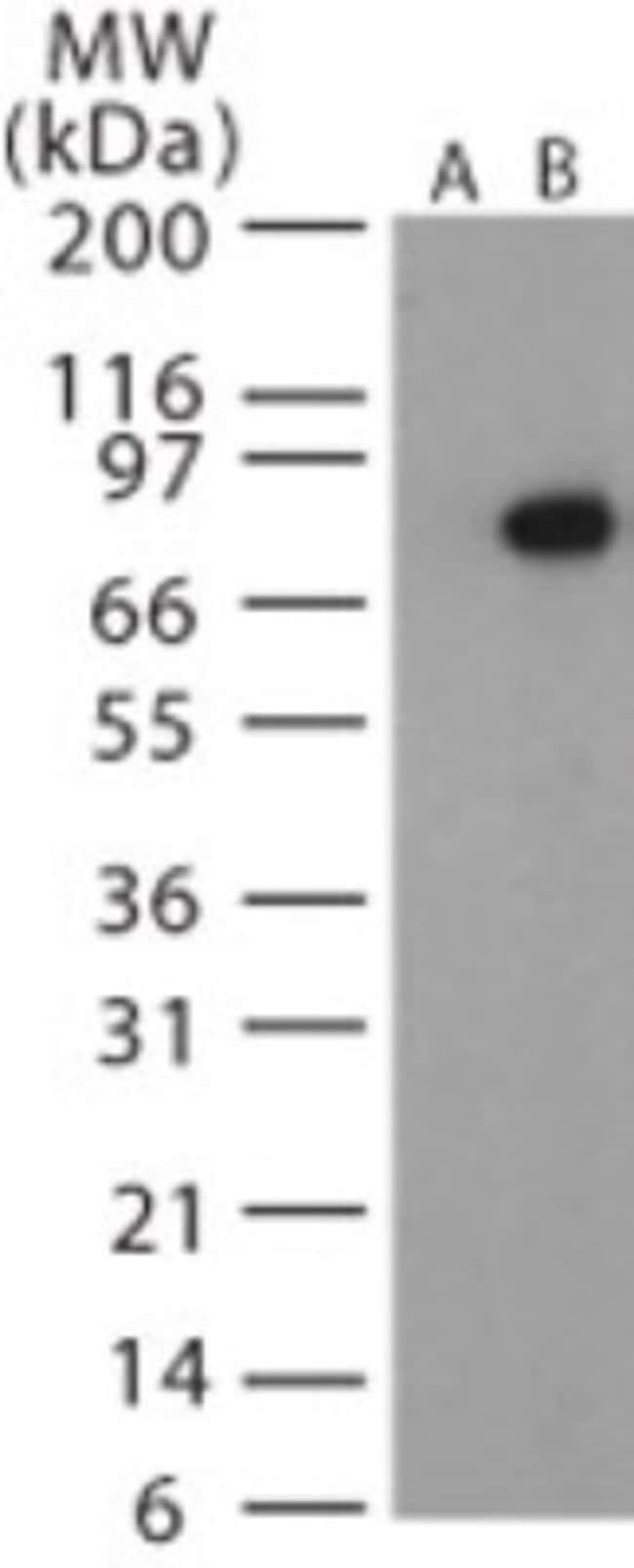The antibody was developed by immunizing rabbits with synthetic peptides corresponding to amino acids 240-254 of the Anthrax PA protein (∼83 kDa). | |