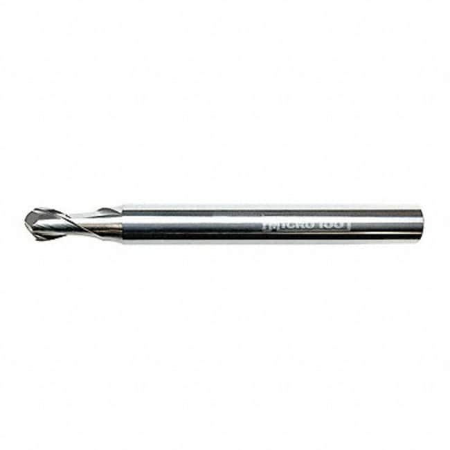 The Ball End Mill from Ball is a high-speed steel end mill with a ball end for milling contoured surfaces. It has a 1/2" shank diameter, a 2" overall length, and a 1/2" cutting diameter. The end mill has 4 flutes and a right-hand spiral. It is made of M42 high-speed steel for wear resistance and has TiAlN coating for heat resistance and lubricity. The end mill has a 30 degree helix angle and is center cutting for plunge milling. It is designed for high feed rates in light milling applications. The end mill is manufactured in the USA by Ball to tight geometric tolerances.