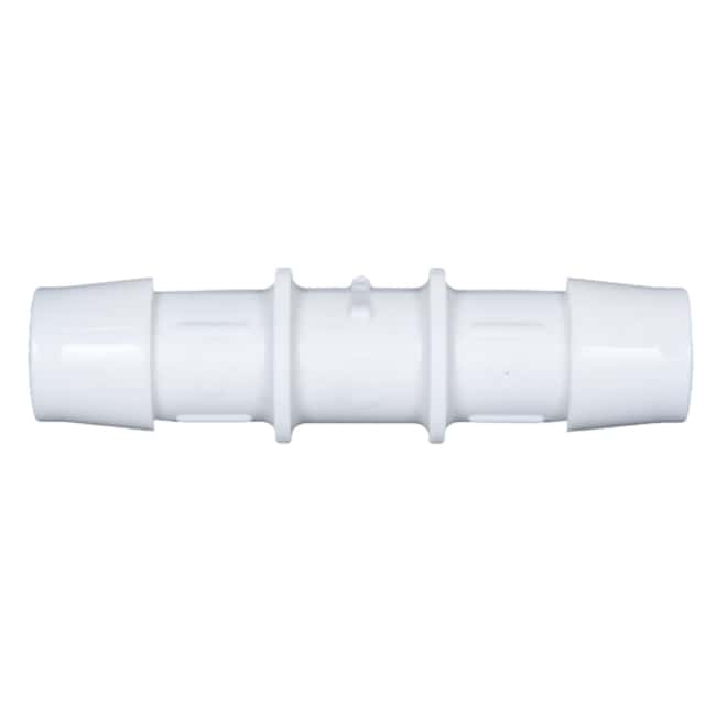 Easily connect two tubing with straight reducers. A single barb on each end of the fitting creates a tight seal to keep the tubing in place. These medical nylon fittings are made from the same resin as natural nylon but with FDA-compliant white coloring. They offer good tensile strength, stiffness, and impact resistance and are resistant to fuels and lubricants. Not recommended for use with phenols, strong acids, and oxidizing agents.