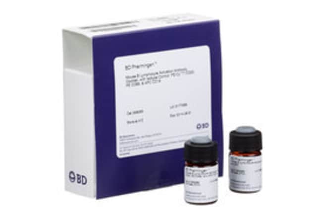 Three antibodies have been titrated and pre-diluted, mixed together, and formulated for optimal staining performance. The Mouse B Lymphocyte Activation Isotype Control contains equivalent concentrations of fluorochrome- and isotype-matched negative-control immunoglobulin