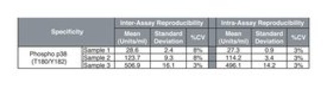 - Capable of measuring human, mouse, or rat p38, a member of the mitogen-activated protein kinase (MAPK) family of kinases, that has been threonine-phosphorylated at Thr-180 and tyrosine-phosphorylated at Tyr-182 in denatured cell lysate samples