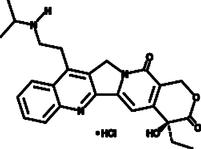 A DNA topoisomerase I inhibitor (IC50 = 0.119 UG/ml); a derivative of camptothecin; inhibits the proliferation of KATO III, HT-29, A549, MDA-MB-231, and SKOV3 cells (IC50s = 160, 10.9, 9, 345, and 31 ng/ml, respectively); induces apoptosis and cell cycle arrest at the G2/M phase in, and inhibits invasion of, SiHa cells at 150 ng/ml; reduces tumor growth in a Ca Ski cervical cancer mouse xenograft model at 25 mg/kg; reduces food intake and body weight in pregnant dams and increases fetal deaths and decreases litter size at 80 UG/kg