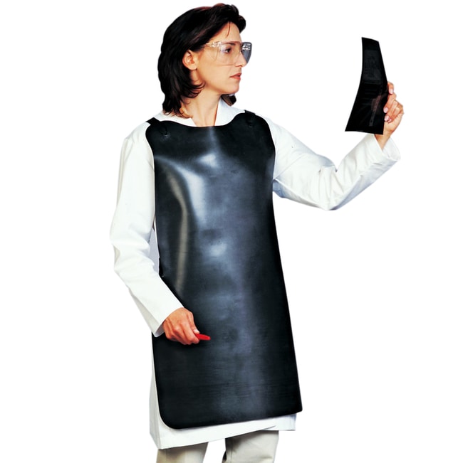 This apron reduces beta emissions from 32P at normal working distances from the radiation source. Apron is fabricated from 1/8 inch thick black neoprene rubber and supplied with adjustable webbing straps and plastic buckles. Strap system places weight of apron on the shoulders instead of the neck.