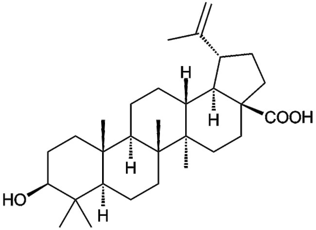 Betulinic acid (CAS 472-15-1) is a pentacyclic triterpenoid obtained from natural sources exhibiting pharmacological properties relevant to oncology and infectious diseases research It induces apoptosis selectively in tumor cells by engaging mitochondrial apoptotic pathways independently of both p53 and CD95 signaling Additionally betulinic acid functions as an agonist for the bile acid receptor TGR5 demonstrating activity with an EC50 of approximately 1 04 M Due to its apoptotic effects and antiviral properties betulinic acid is extensively utilized in preclinical studies exploring cancer therapeutics and anti-HIV strategies