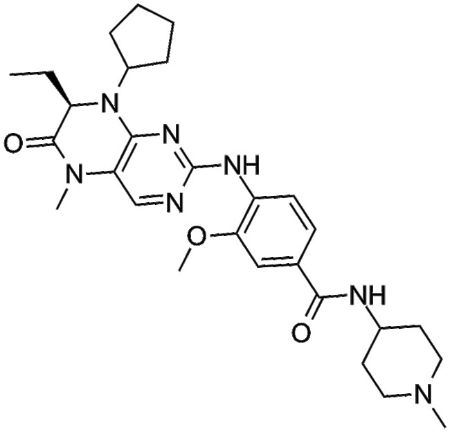 BI 2536 (CAS number 755038-02-9) is an ATP-competitive inhibitor selectively targeting human polo-like kinase 1 (PLK1) exhibiting an IC50 value of approximately 0 83 nM Comparatively BI 2536 shows substantially less affinity towards other kinases In vitro studies demonstrate that BI 2536 inhibits proliferation of various human tumor cell lines (EC50 values ranging from 2 to 25 nM) and induces G2/M cell cycle arrest accompanied by apoptosis as evidenced in HeLa cervical cancer cells In vivo data from xenograft tumor models indicate that BI 2536 administered intravenously on a weekly or biweekly schedule possesses antitumor efficacy
