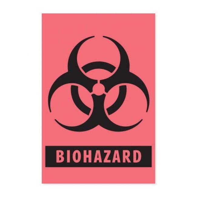 PDC Biohazard Hazard Label, Fluorescent Red, 500 Labels/Roll